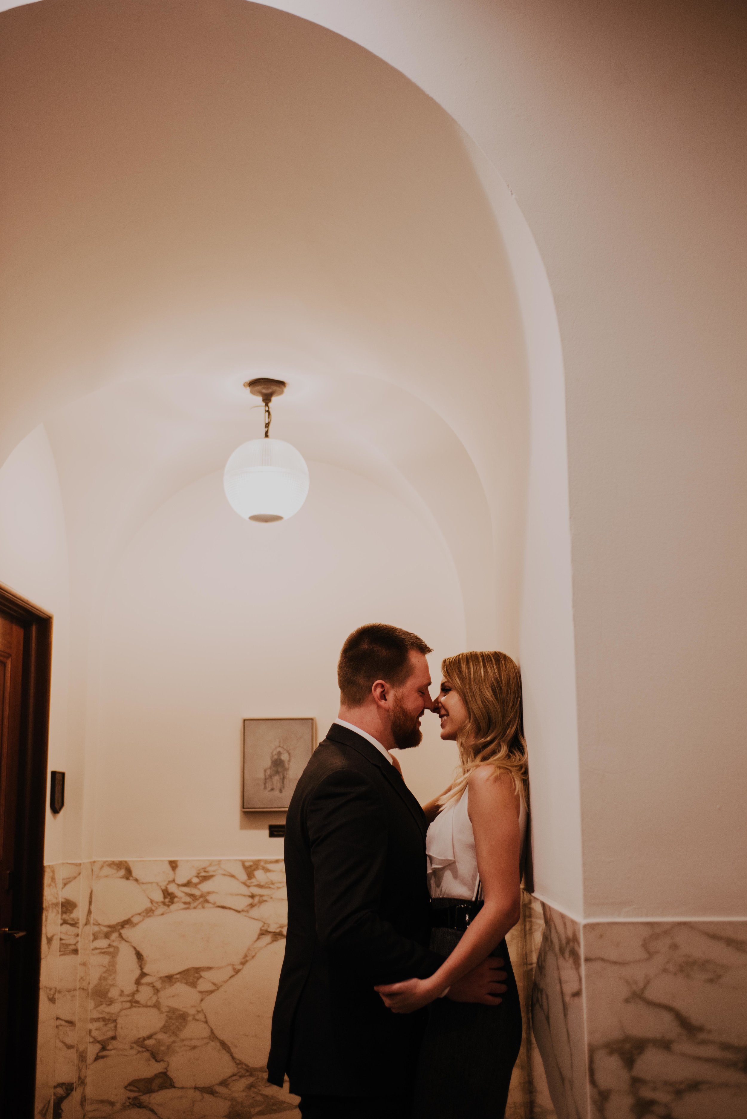 Tabitha & Rick were super lucky that they came to us with the idea that they wanted to have their engagement session at the Detroit Foundation Hotel, because we knew just the right people to get them in! It’s such a gorgeous structure with so many beautiful spaces to photograph, and we took advantage of just about as many as we could for this engagement session. They were such an easy-going couple to work with, and their smiles truly lit up the room!